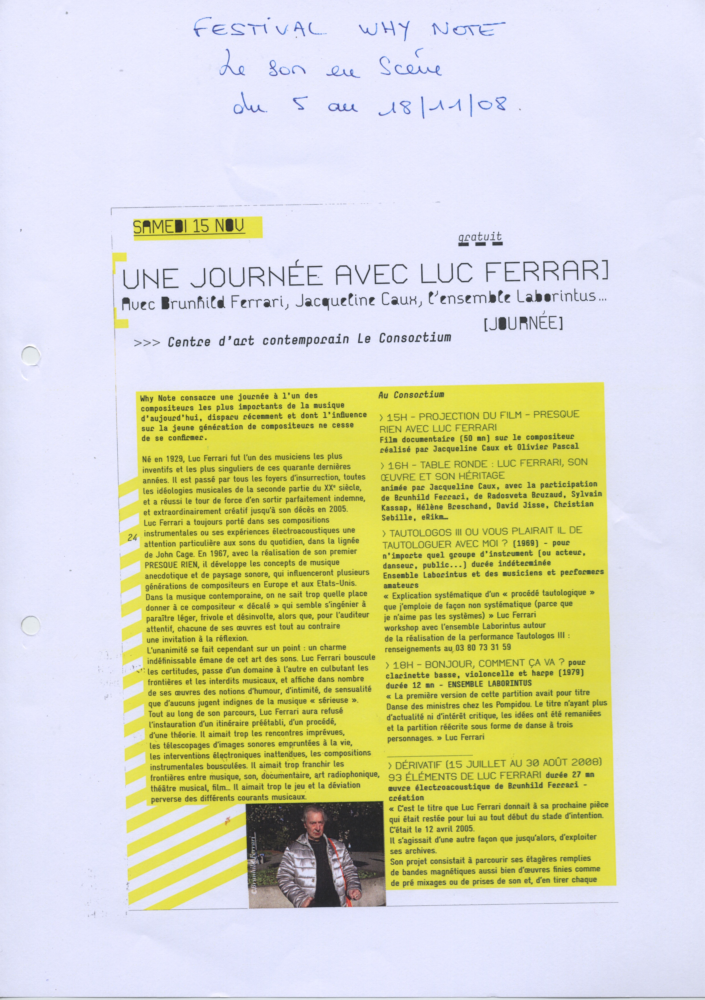 "Hors les Murs" Oeuvres de compositeurs français: Luc Ferrari, Sylvain Kassap, François Rossé